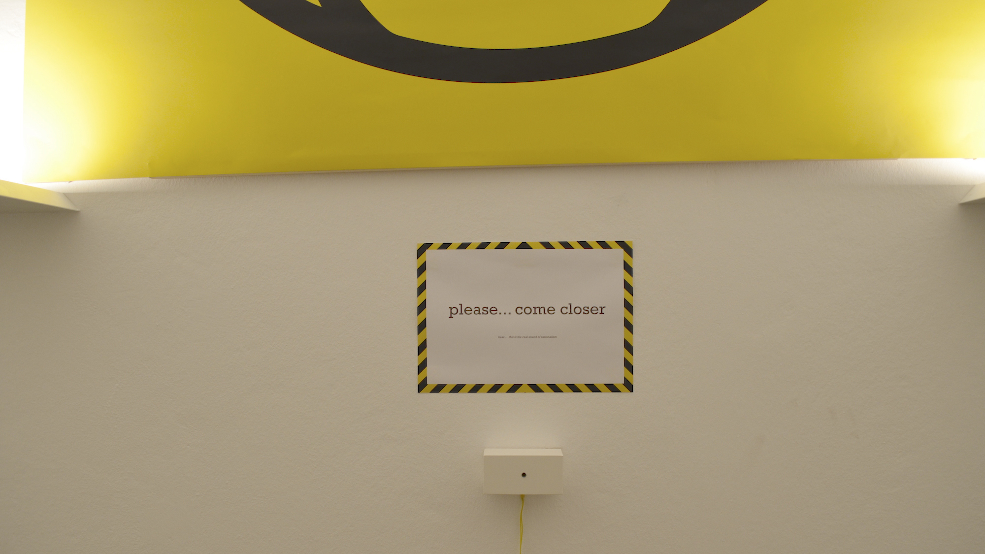 In Germany, like in most of the countries, the watching over civilians is a synonym of state security and mass control. THE EYE is a responsive sound installation that intervenes in the connection between nationalism (in this case the german anthem) and state surveillance (represented by the response of the sound due to the movements of the visitor).