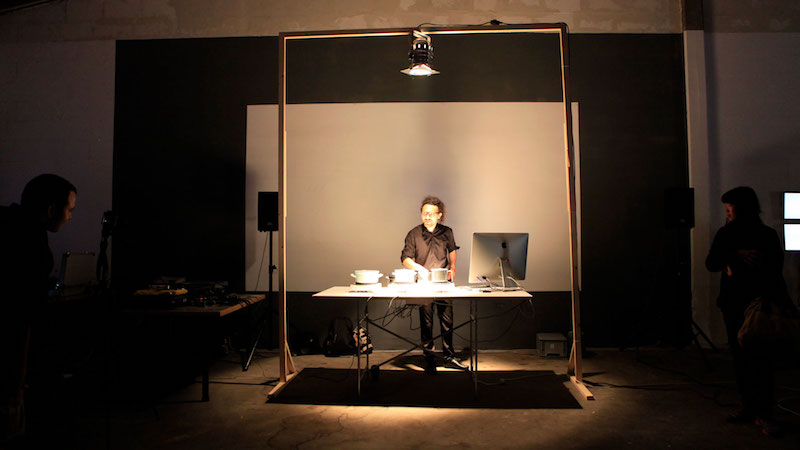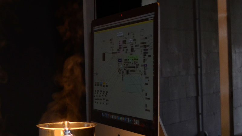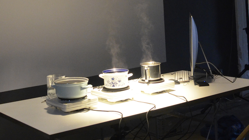 In this performance, water temperature is the medium to control sound; water temperature data were used as an input to control the parameters of a particular sound and reproduce it. It was made by means of temperature sensors, a computer, and a midi player.